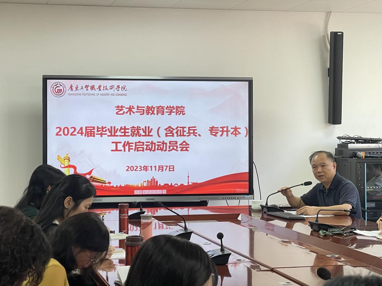 会上,叶宜同对2023届毕业生就业工作进行总结,并对2024届毕业生就业工作进行部署,首先解读了学院《2024届毕业生就业(含征兵、专升本)工作实施方案》粤工贸艺教〔2023〕7 号文内容,接着针对现阶段就业工作情况提出两点要求,一是全院教职工要积极做好本学年就业工作总结和反思,有序启动开展2024届毕业生就业工作。二是全院上下进一步提高认识、凝聚共识,做到“人人关心、人人参与就业”的服务理念,全方位跟进,多层次联动,全力推动就业工作的发展。另外,叶宜同通报了学校2024届普通高校毕业生系列供需见面活动的进展情况并希望全院教职工积极参与到筹备工作中。
