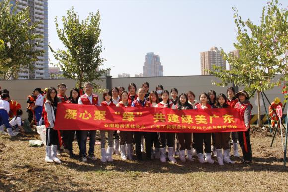 3月12日是我国的第46个植树节。为深入贯彻落实党的二十大精神和习近平生态文明思想,牢固树立和践行绿水青山就是金山银山的发展理念,艺术与教育学院联合荔湾区石围塘街林长办在植树节当天共同开展了以“凝心聚‘绿’ 共建绿美广东”为主题的义务植树活动。在学院党总支临时负责人叶宜同的带领下,学院团委、学生党支部组织党员和团员代表一同到珠江岸边参与植绿护绿爱绿行动,共建美丽广州。