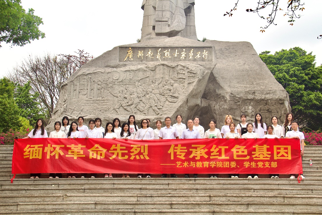 清明节前,艺术与教育学院学生党支部全体党员、入党积极分子以及学院团委部分干部共32人在学生党支部书记谭武的带领下于2024年3月28日赴广州烈士陵园开展了以“缅怀革命先烈 传承红色基因”为主题的缅怀先烈活动,党总支临时负责人叶宜同作为党支部一员参加了此次活动。