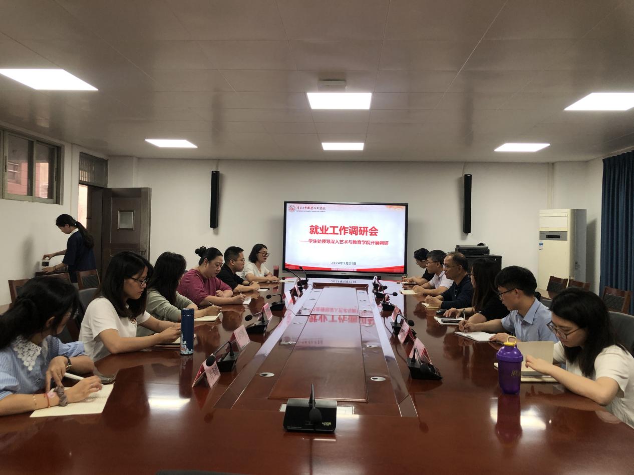 为进一步贯彻落实学校关于就业工作的决策部署,推动毕业生实现高质量和更充分的就业。5月21日上午,学生工作处副处长许斯华带队深入艺术与教育学院,开展了面对就业工作的专题调研座谈会,会议由学院党总支临时负责人、副书记叶宜同主持,艺教学院学工办主任谭武和全体辅导员参加了会议。