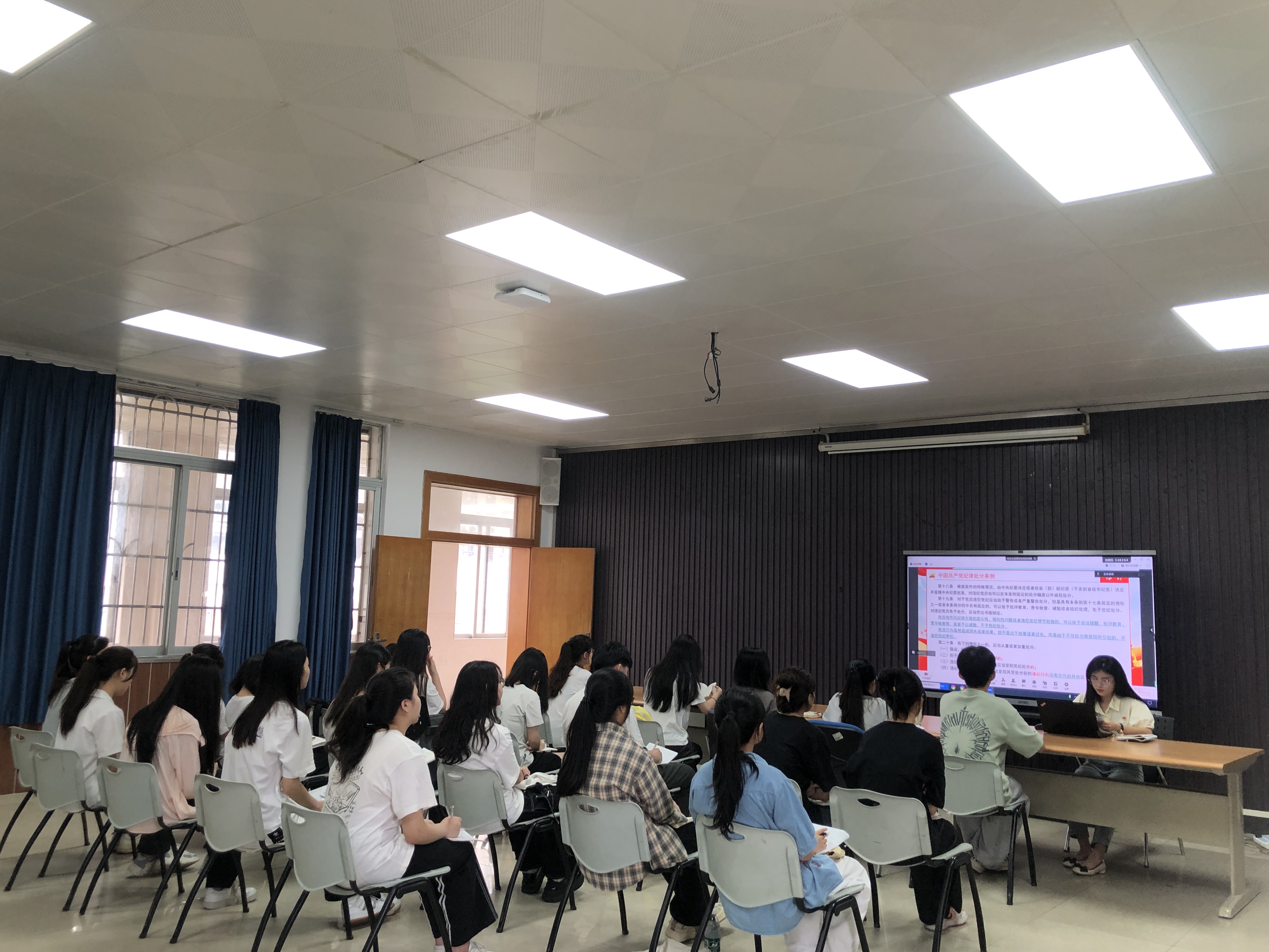 为扎实推进党纪学习教育以及促进“一站式”学生社区建设,5月27日,艺术与教育学院学生党支部纪检委员肖泽娜同志深入学生社区,在8栋学生宿舍509活动室为学生开展党纪学习教育专题讲座。参加讲座的同学有学生预备党员、发展对象、学生会骨干共38人。