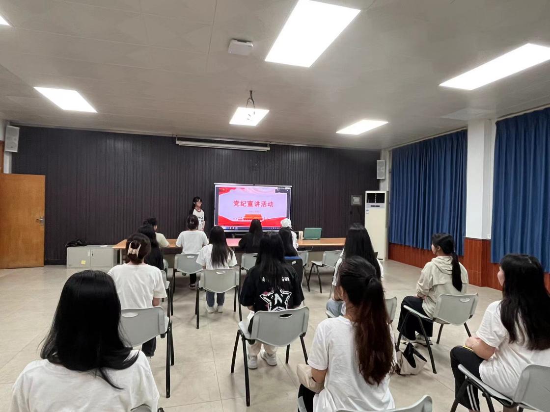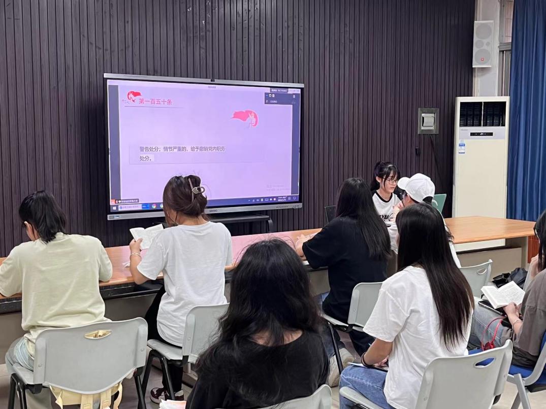 为进一步加强学生骨干的纪律教育,提高党性修养,确保党的纪律在学生骨干中得到有效遵循,2024年5月26日学生党员陈容容同志在宿舍楼8栋509开展党纪宣讲活动。