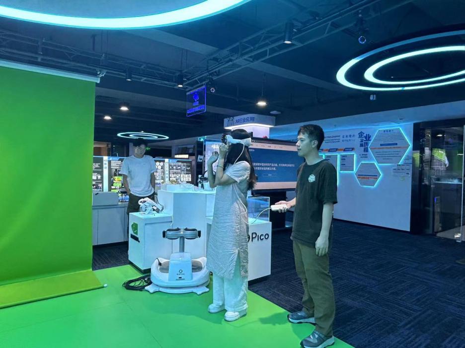 随后,团队来到了专注于数字科技的宽恒信息科技有限公司。通过现场体验VR设备,教师们深入了解了最新的虚拟交互技术。在与企业高层的交流中,团队成员聚焦于学生的就业议题,探讨了新技术对设计行业人才需求的变革,并就如何适应和引领行业趋势、创新人才培养和就业指导的新策略进行了深入研讨。