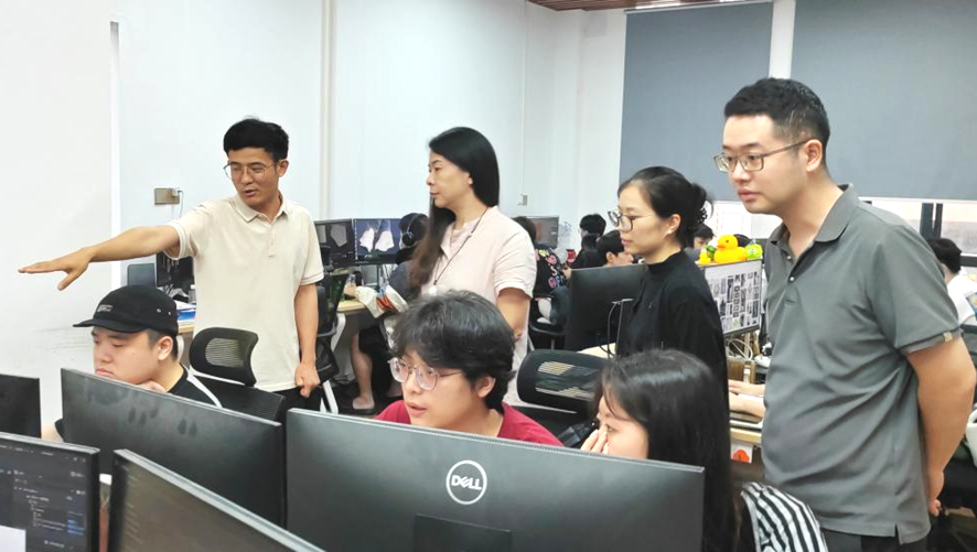 教师团队首站抵达广州虚拟动力有限公司,在企业负责人的引导下,团队成员参观了公司自主研发的动作捕捉设备、数字人制作设备及数字人智能交互平台,并亲身体验了这些设备的操作与功能。接着,教师团队深入研发部门和设计部门,详细了解了数字创意行业的最新发展动态。在参观过程中,张幼晖副院长与企业负责人就数字创意行业的人才需求和用人标准进行了深入的探讨和交流,并向用人单位介绍了我院的专业特色、人才培养情况以及2024届和2025届毕业生的总体情况,并希望进一步密切校企联系,实现更充分的供需对接。