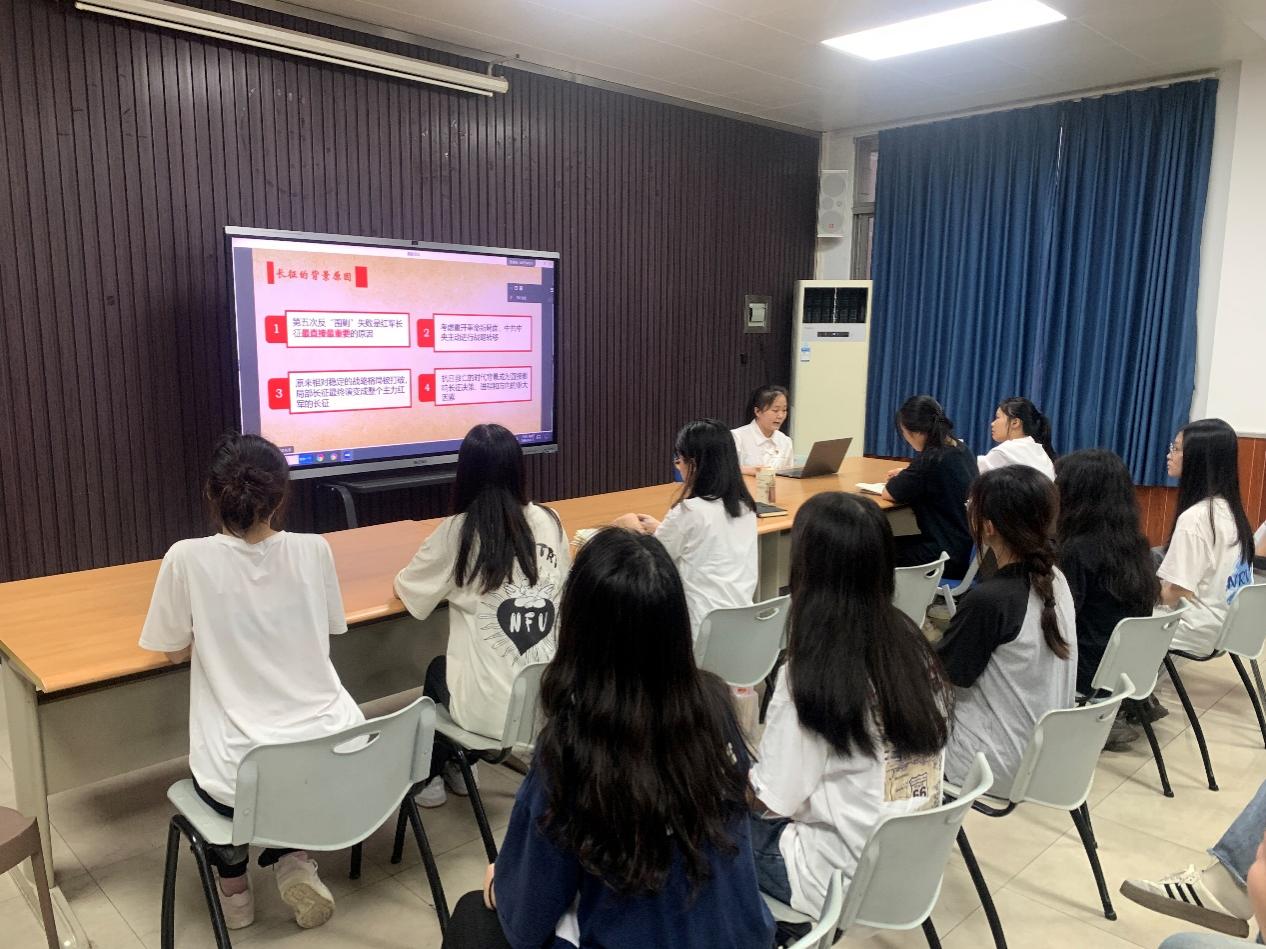 郑少丹以《长征精神》为主题进行党史宣讲,宣讲内容包括对红军长征的历史背景、重要过程和伟大意义。她指出,同学们应该共同弘扬长征精神,赓续红色血脉,传承革命先辈们伟大的奋斗精神,为实现中华民族伟大复兴的中国梦贡献自己的力量。通过对红军长征历史的回顾,学生骨干深入认识和理解了党的伟大历程和革命精神。