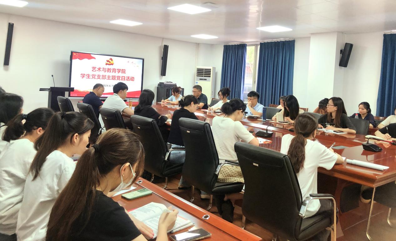 2024年6月19日下午,艺术与教育学院学生党支部在笃学楼207召开主题党日活动及专题党课学习,学生党支部全体党员参加了活动。本次主题党日活动旨在推动党纪学习教育入脑入心、走深走实,并进一步强化党员的纪律意识。