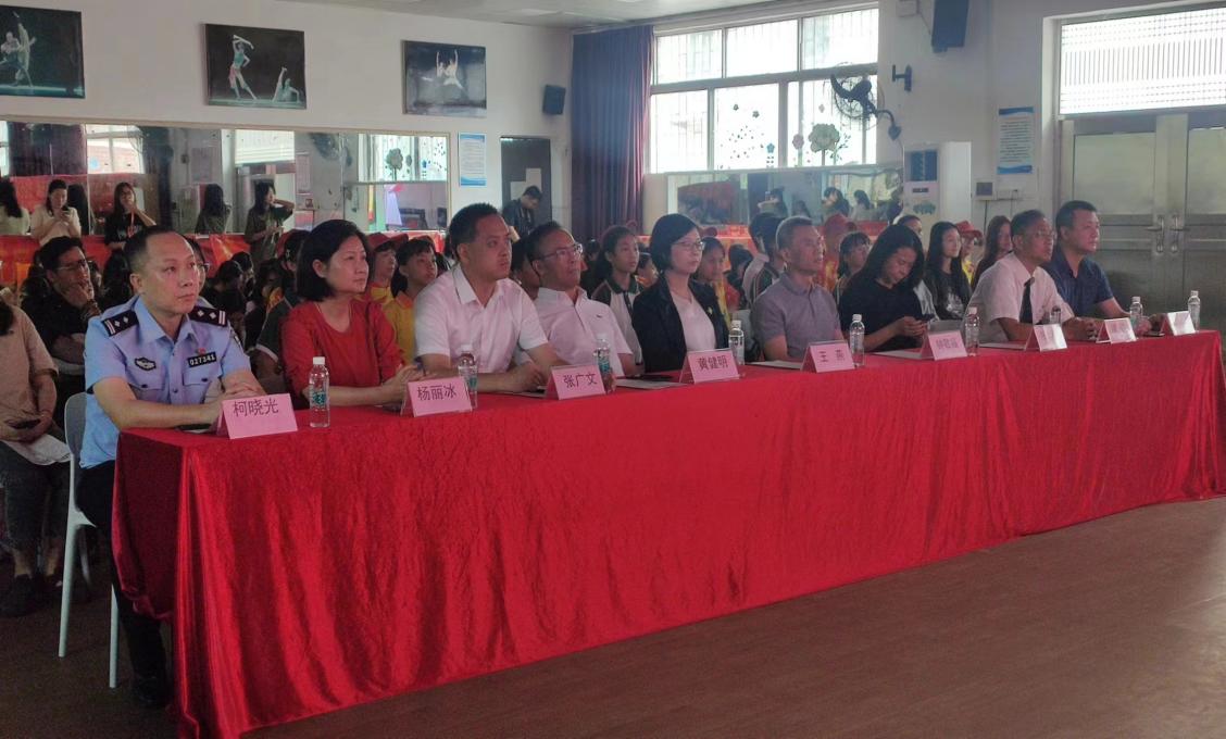 出席本次活动的领导及嘉宾有:荔湾区委政法委副书记王燕、区禁毒办副主任钟敬福、石围塘街道党工委书记黄健明、街道办事处主任张广文、党工委副书记杨丽冰、艺术与教育学院临时负责人张幼晖、街道派出所副所长柯晓光、司法所所长谭健、法治办主任庹世川等相关部门领导参加了本次活动。