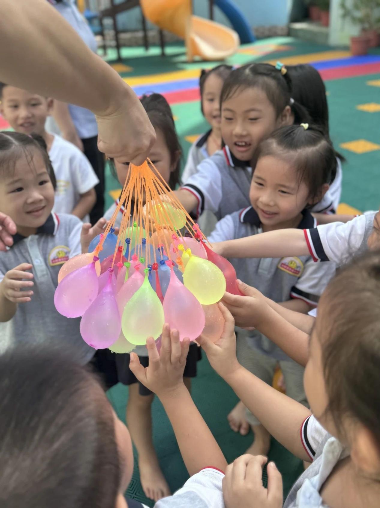 童心源幼儿园小朋友参与突击队队员组织的趣味水球活动
