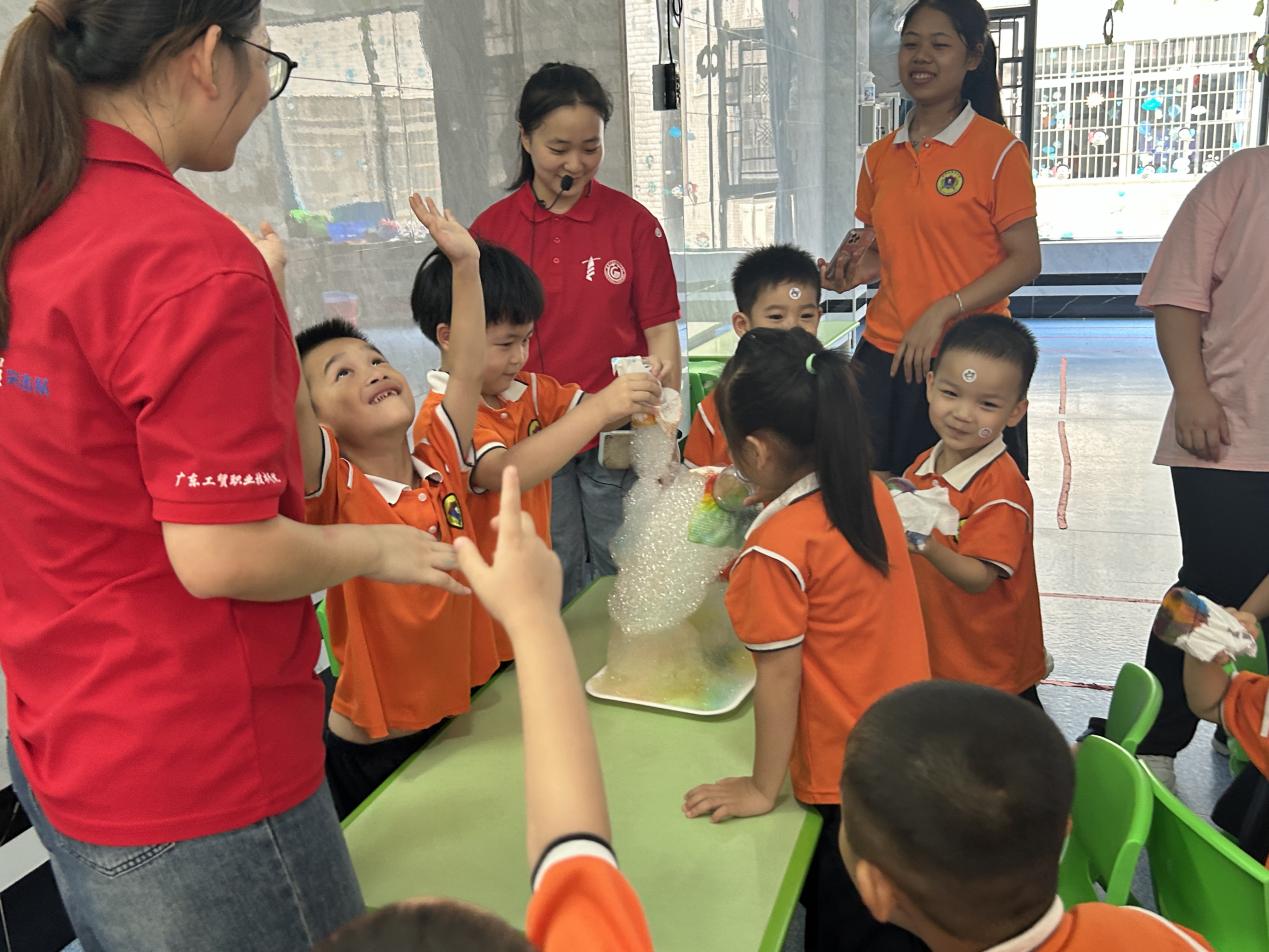 童星启博幼儿园小朋友参与突击队队员策划开展的科学小实验彩虹泡泡龙