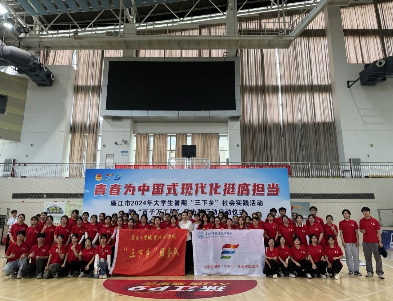 突击队队员在廉江市2024年大学生暑期“三下乡”社会实践活动暨“百千万工程”突击队行动启动仪式上的大合影