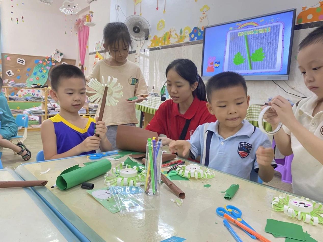 石龙幼儿园小朋友在突击队队员主持的“夏日之花”纸杯花手工特色课堂上制作纸杯花