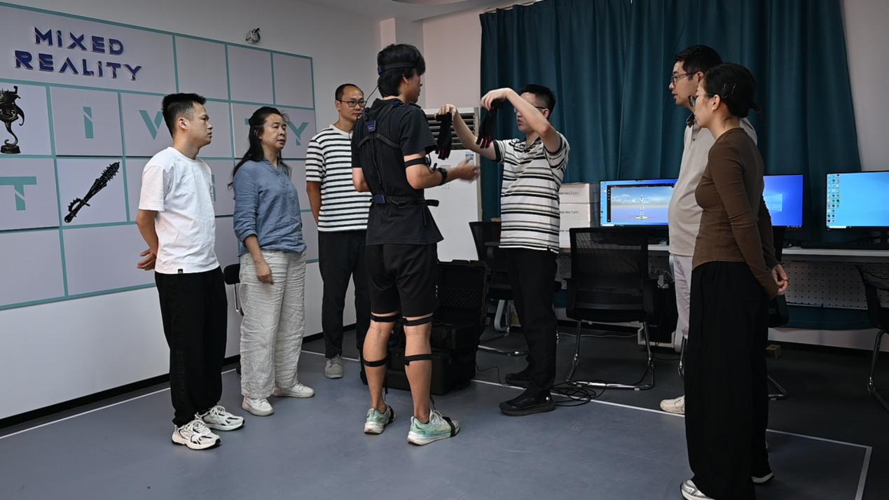 张幼晖院长带领青年教师现场交流学习动作捕捉设备使用方法