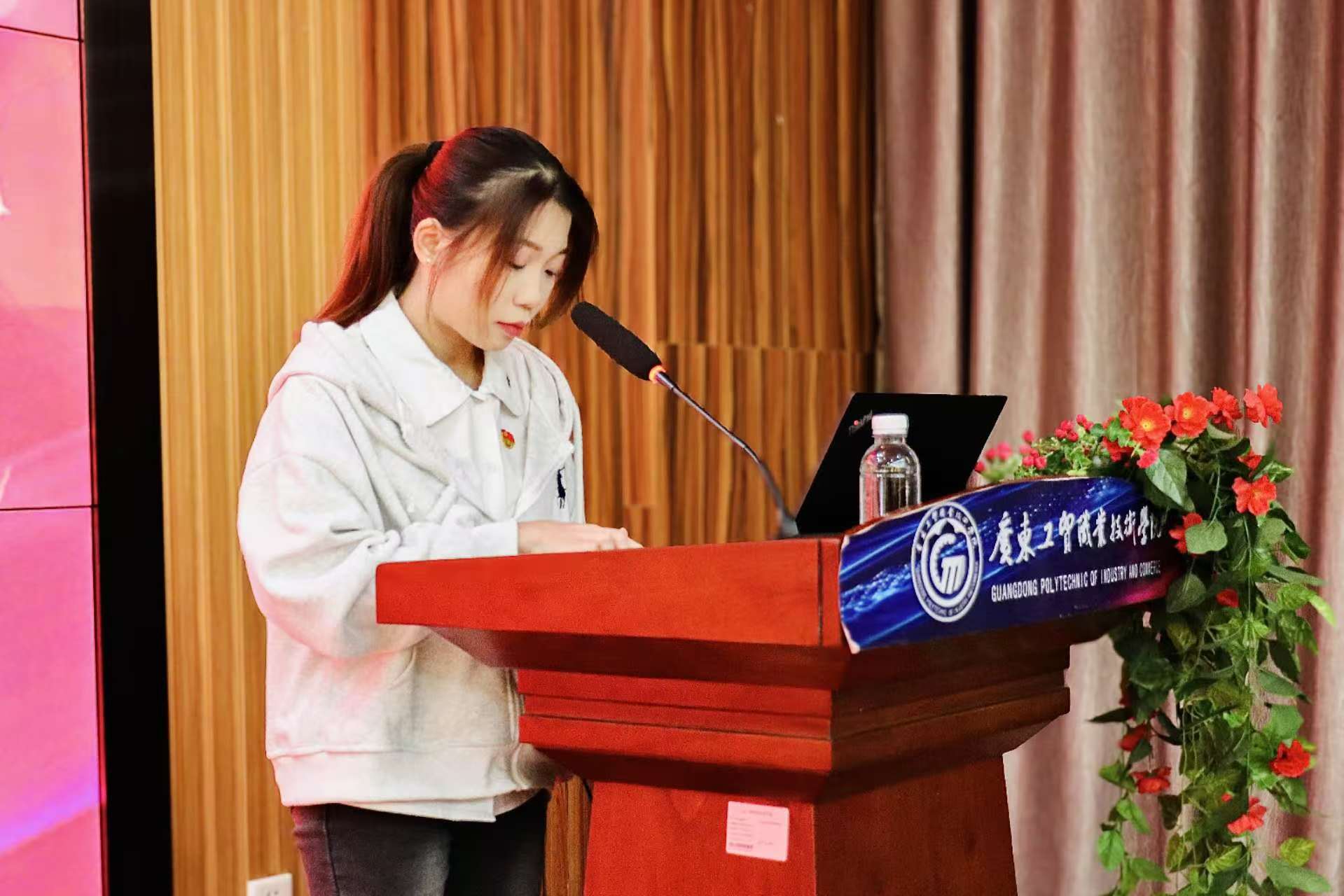 随后,2025届毕业生刘成敏同学代表毕业生发言。她回顾了在校期间学习与成长,分享了自己在专业知识学习和实践活动中的收获,并表达了对未来就业的期待。她表示,在当前的严峻的就业形势下,保持积极的心态,勇于迎接挑战,将有助于每位同学找到适合的职业,实现自我价值。