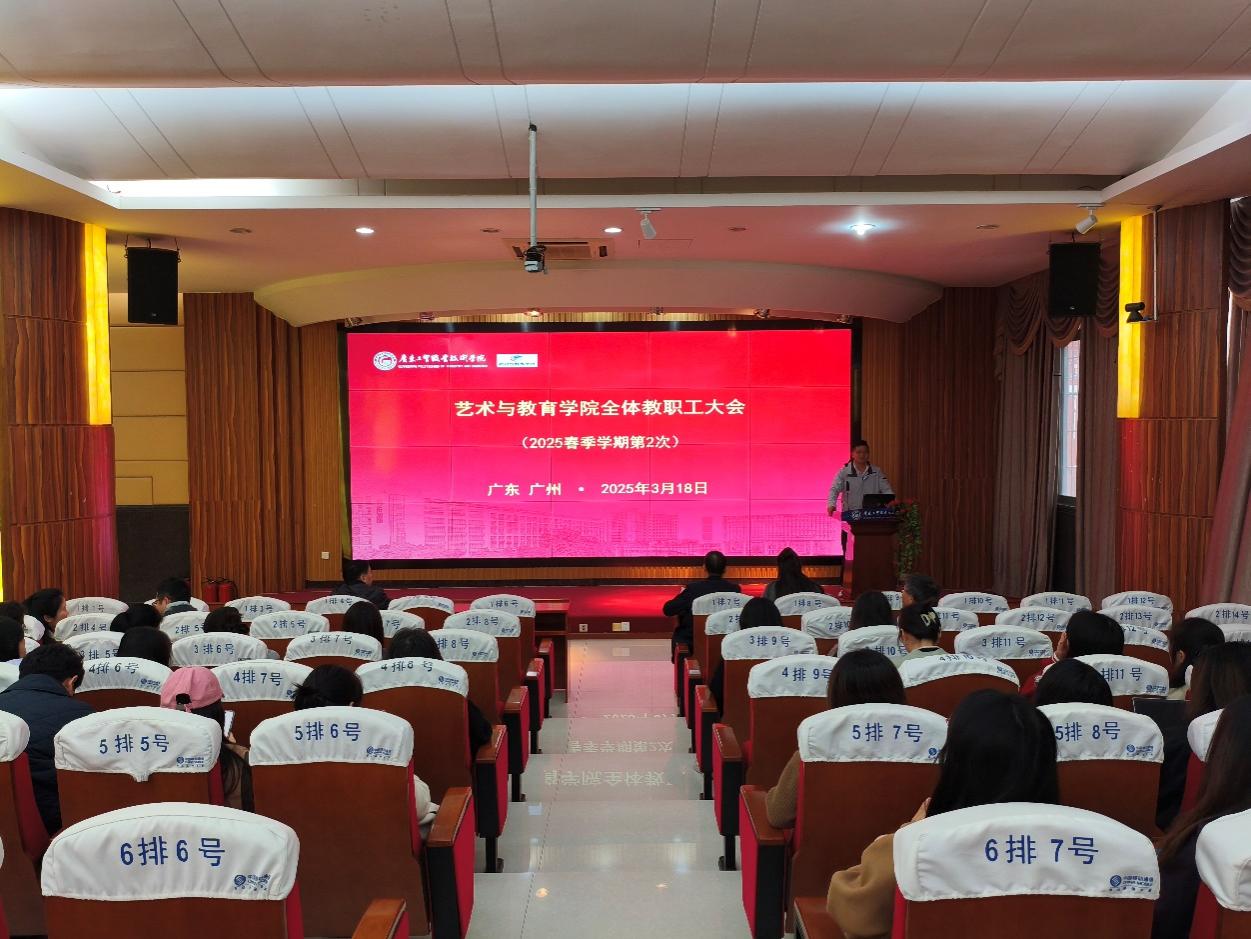 2025年3月18日下午,艺术与教育学院在荔湾校区笃学楼报告厅召开全体教职工大会暨政治理论学习。会议由艺教学院党总支副书记代启兵主持,艺教学院全体教职工参加了会议。