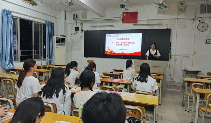 2025年5月29日晚上,艺教学院党总支在笃学楼401教室组织开展了2025年第一期党员发展对象培训班小组学习讨论会。