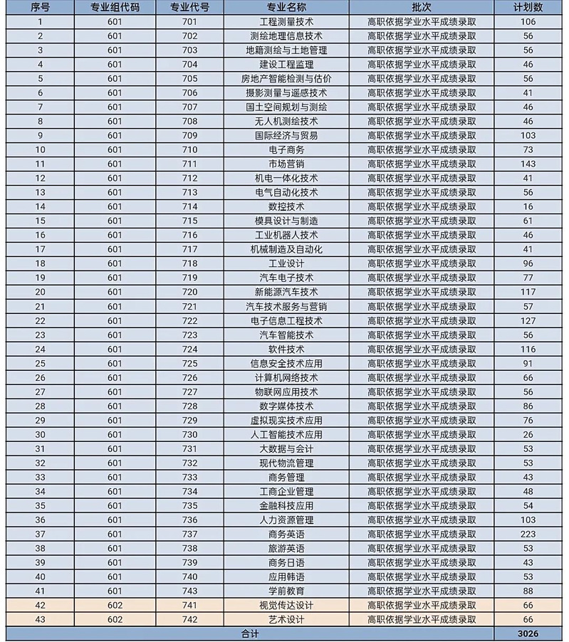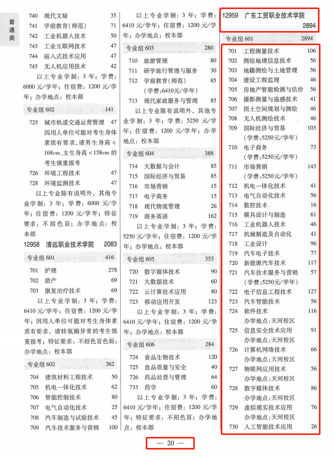 1、学考普通类→第20-21页;专业组代码→601;招生计划数→2894