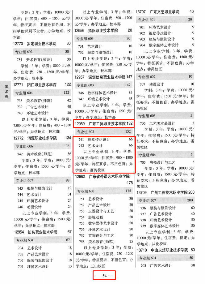 2、学考美术类→第54页;专业组代码→602;招生计划数→132