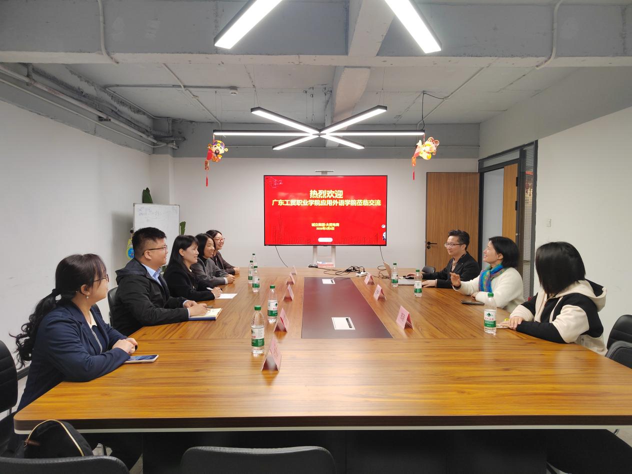 为深化产教融合、精准对接行业人才需求、拓宽毕业生就业渠道,2026年2月3日,应用外语学院副院长胡红玲携同系主任王宗喆、雷莹和专任教师付慧平、张洁一行,前往校企合作单位广州大匠电子商务有限公司开展“访企拓岗”专项调研活动。