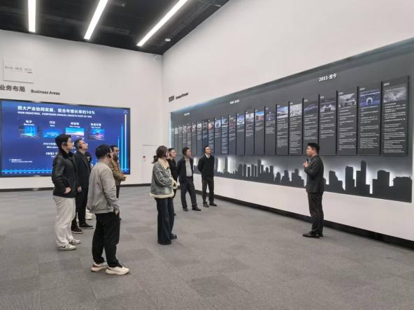 交流会议开始前,在比亚迪集团相关负责人的引导下,工贸学院参观团队先后走进比亚迪集团发展历史展厅、主要产品展示区、领先技术展示区及生态演示区。