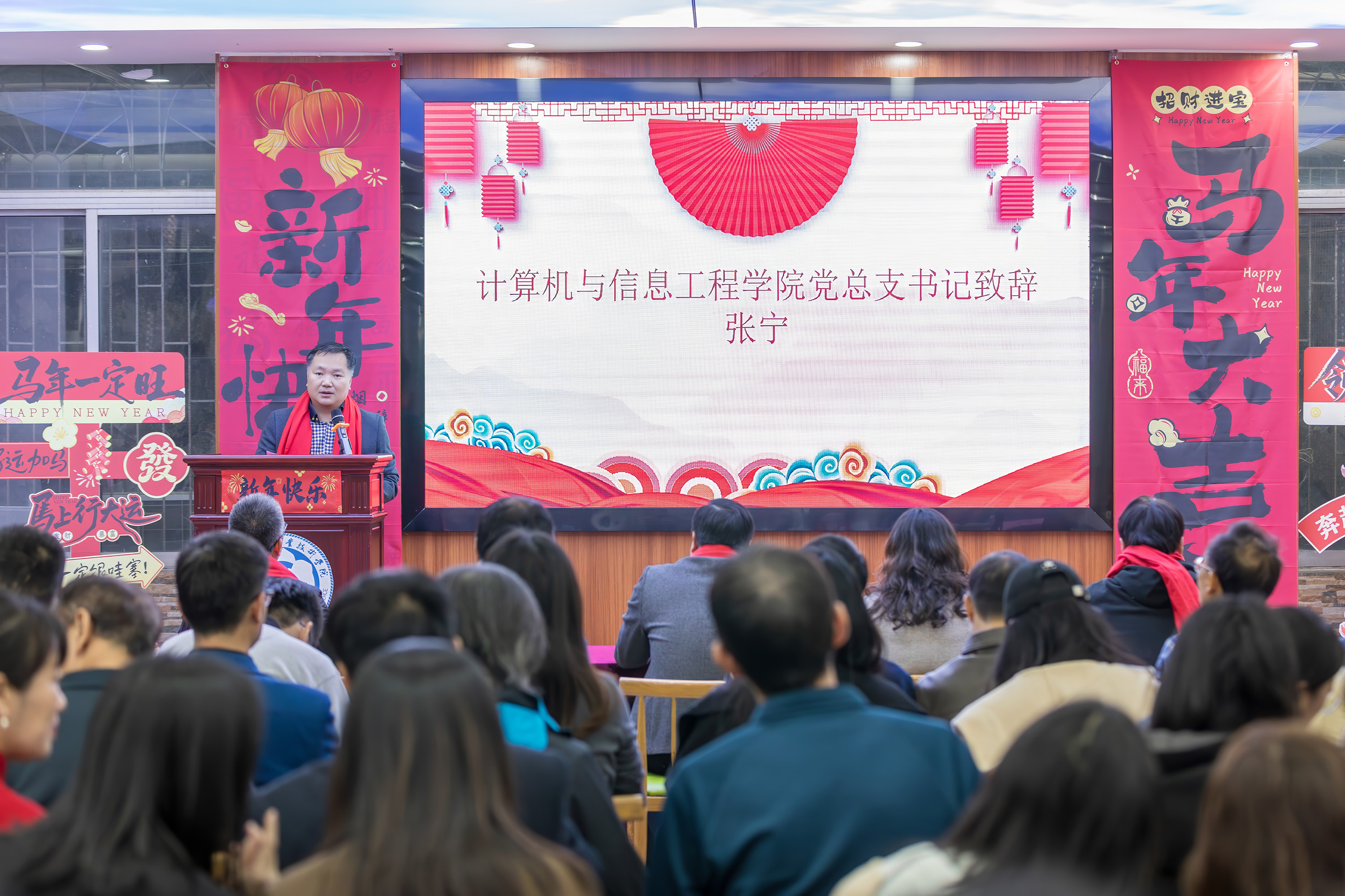 在辞旧迎新、共赴新程的温情时刻,揭英荣与计算机学院领导班子一同向全体教职工致以诚挚的新春问候。亲切的祝福如春风拂面,为会场增添了浓浓的暖意与融融的喜庆。