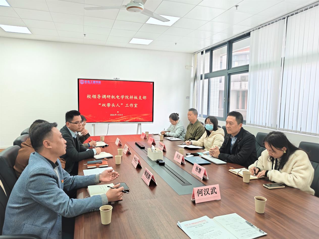 2025年1月5日,学校党委书记何汉武深入机电工程学院党总支,专题调研广东省“双带头人”教师党支部书记工作室培育建设工作,听取了学院党建工作情况汇报,并对下一步工作提出了指导意见。学校组织宣传统战部部长杨慧、机电工程学院党总支书记梁超鹏、院长罗庚兴,组织宣传统战部和机电工程学院相关同志参加了会议。