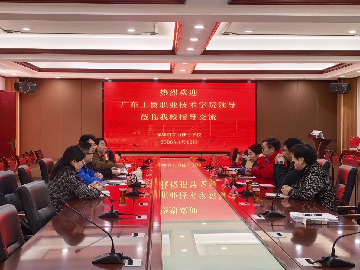 2026年1月12日,学校培训与继续教育学院院长邹德军、副院长王坤明带领学校学历提升项目管理团队,前往深圳市宝山技工学校教学点(下称:深圳宝山学校)开展高等学历继续教育工作交流会议暨教学检查活动。深圳宝山学校校长邓志久、副校长张晋平、杜冬丽和培训处处长刘强出席会议,双方围绕高等学历继续教育高质量发展展开深度探讨,为后续合作提质增效奠定坚实基础,以期更多学子能够通过更高质量的学历提升切实提升自身素养及竞争优势。