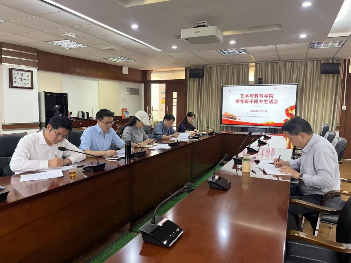 深入学习贯彻党的二十届四中全会精神,学习贯彻习近平总书记关于深入贯彻中央八项规定精神学习教育的重要指示精神,巩固拓展学习教育成果,落实推进党的自我革命“五个进一步到位”的重要要求,为实现“十五五”良好开局打牢思想基础的重要举措,根据学校党委《2025年度党员领导干部民主生活会方案》统一部署,2月27日下午,艺术与教育学院党总支在天河校区中心会议室召开了2025年度党员领导干部民主生活会。学校党委委员、副校长孙师家同志到会指导。学院党总支书记李繁、院长张幼晖、副书记代启兵、副院长彭金奇参加会议,刘楚泽、隋嫦婉、肖泽娜列席会议。会议由李繁主持。